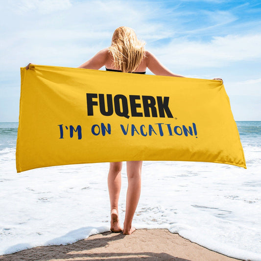 FUQERK 'I'm On Vacation' Beach Towel | Vibrant Style & Comfort | Yellow